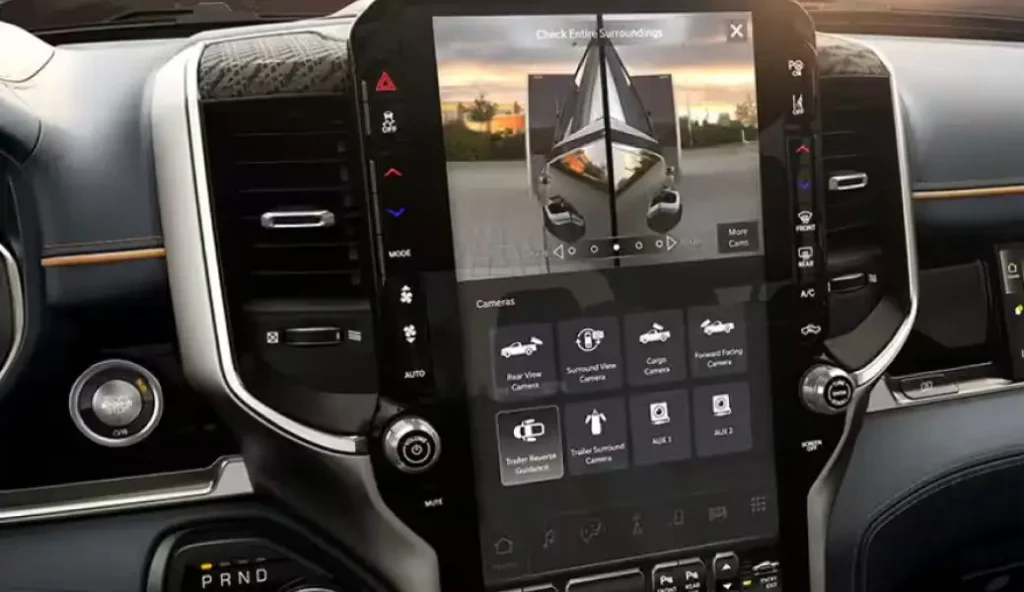 RAM 1500 se remarcă prin cel mai mare ecran touchscreen disponibil în clasa sa — un impresionant display central Uconnect® de 14.5 inch, care oferă acces rapid la navigație, divertisment și setări de confort. În plus, pentru un nivel de interactivitate superior, modelul poate fi echipat cu un ecran digital de 12 inch pentru șofer și un display exclusiv de 10.25 inch pentru pasagerul din față. Cu peste 50 de inch de afișaj digital combinat, RAM 1500 stabilește un nou standard în segmentul său