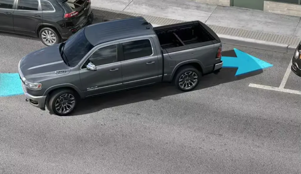 Dați în marșarier atât truckul, cât și remorca, în mod eficient, datorită funcției disponibile Trailer Reverse Guidance with Dynamic Gridlines. Când conduceți în marșarier, traiectoria preconizată a remorcii dvs. este afișată pe ecranul tactil Uconnect® 5 NAV și evidențiată prin linii dinamice. În cazul unei potențiale situații de răsturnare, o avertizare sonoră vă va alerta.